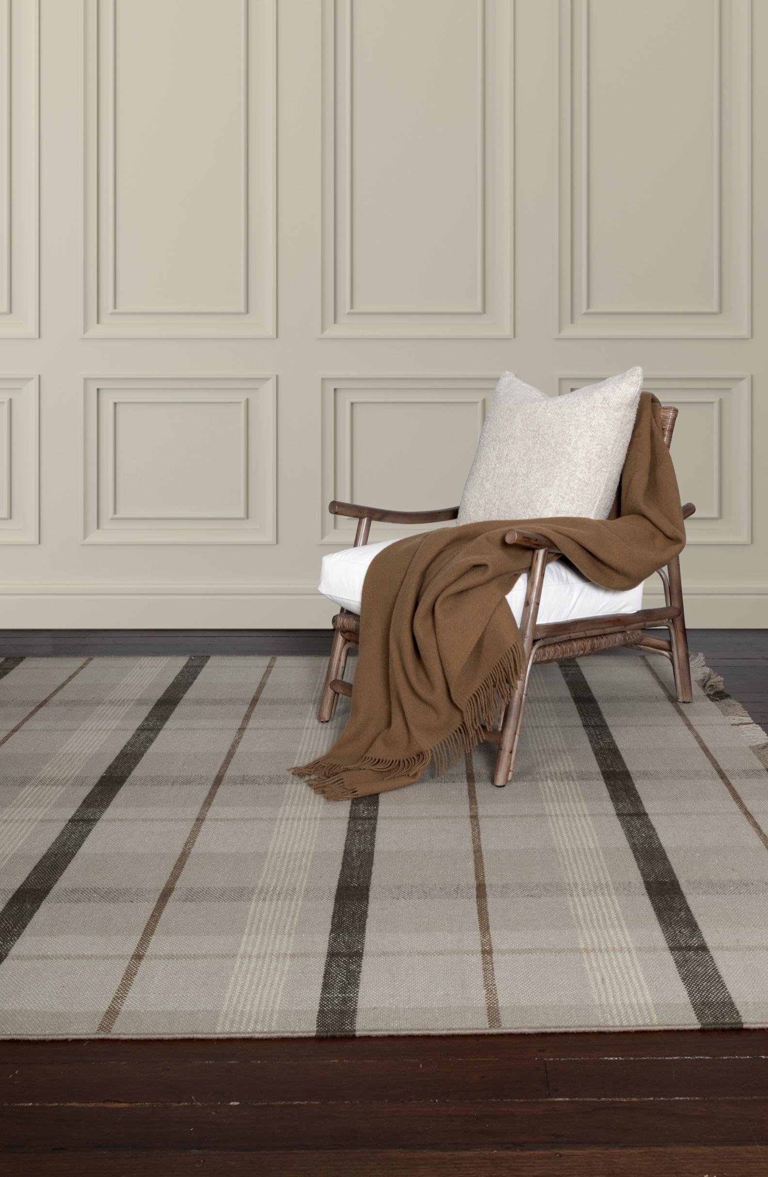 Hand-crafted flatweave plaid design in New Zealand wool.