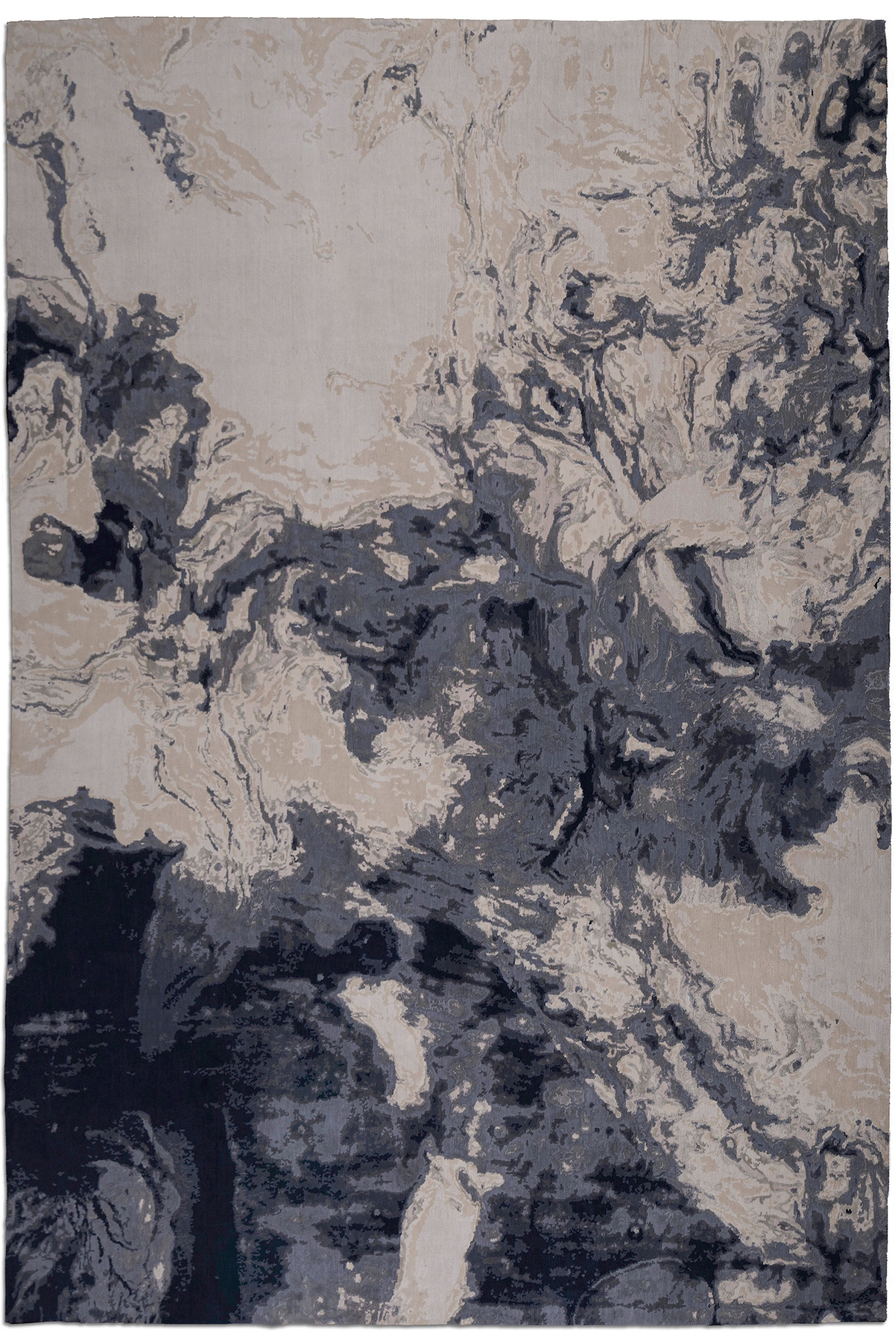 Hand knotted in New Zealand wool and tencel.